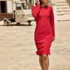 Delia is the elegant, long-sleeved version of our beloved Gloria. Made from our smooth jersey lycra, our travel jersey styles are made from 100% recycled yarn in an eco-friendly production cycle, read more here! With her elegant silhouette and long sleeves, Delia is a versatile addition to your wardrobe. Whether you pair her with a blazer for a day at the office or with heels and jewellery for an evening out, Delia is a perfect choice for any occasion.