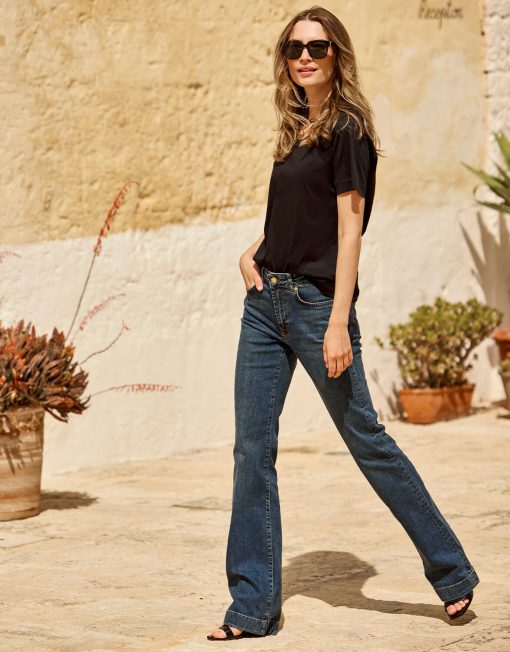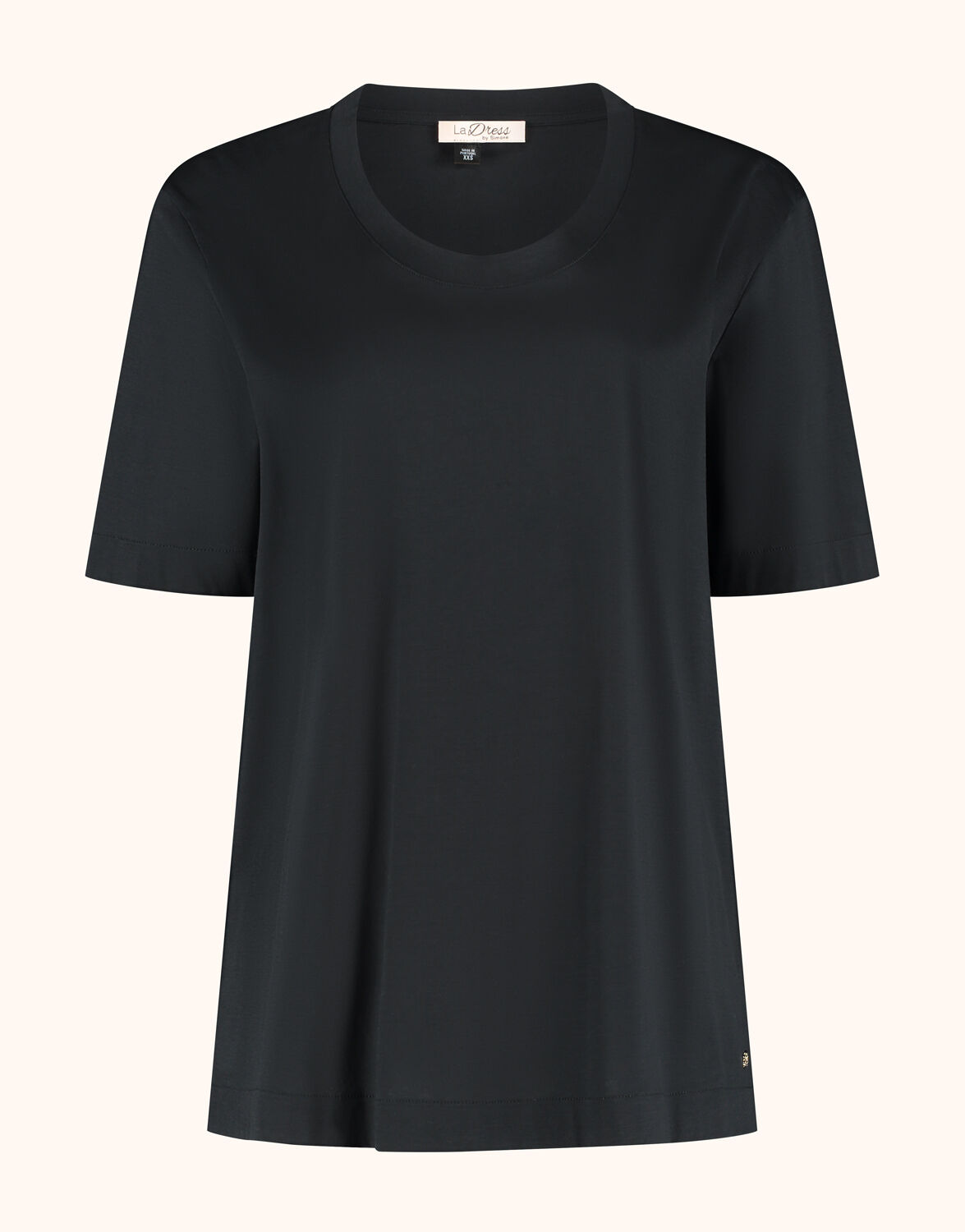 Meet Laurie and explore the versatility and simplicity of a classic T-shirt. She simply goes with everything, from dressing up under your favorite suit to pairing her with your LaDenim for a daytime look. Laurie has a boxy fit, a scoop neckline, and is made from 100% soft cotton with a lustrous appearance, making her the ultimate investment piece.