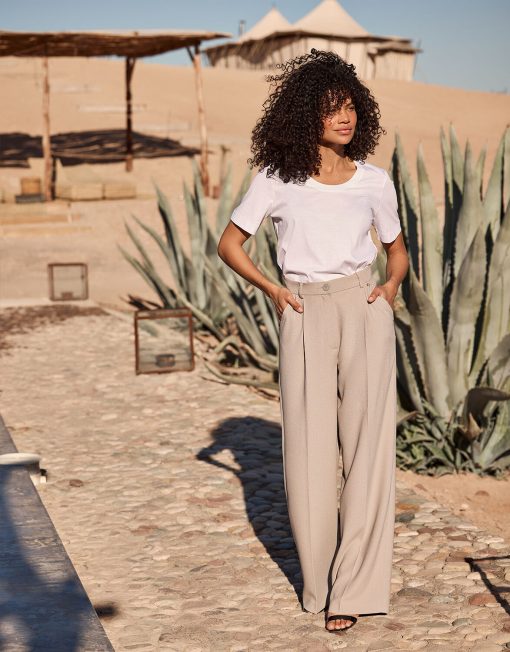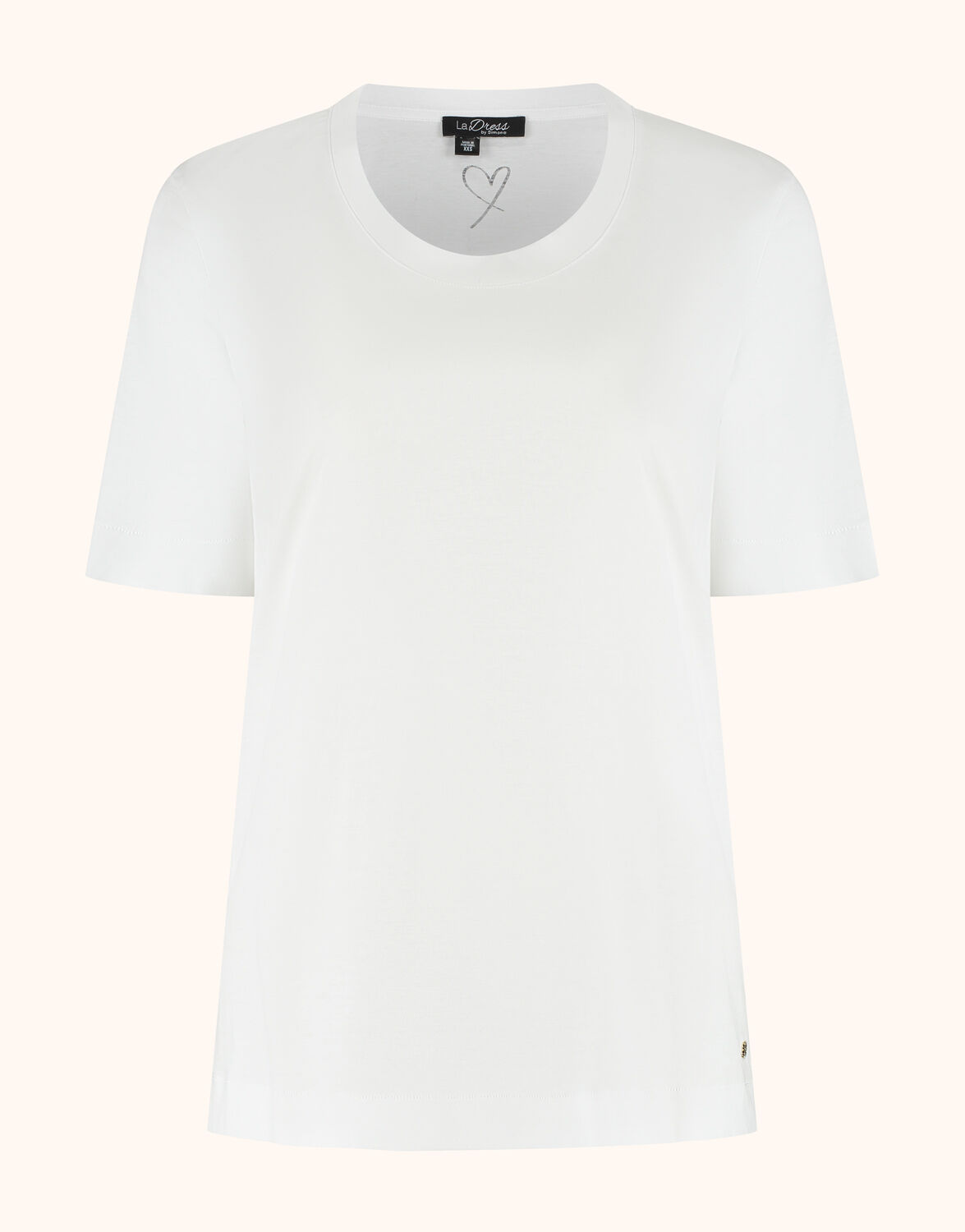 Meet Laurie and explore the versatility and simplicity of a classic T-shirt. She simply goes with everything, from dressing up under your favorite suit to pairing her with your LaDenim for a daytime look. Laurie has a boxy fit, a scoop neckline, and is made from 100% soft cotton with a lustrous appearance, making her the ultimate investment piece.