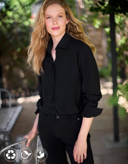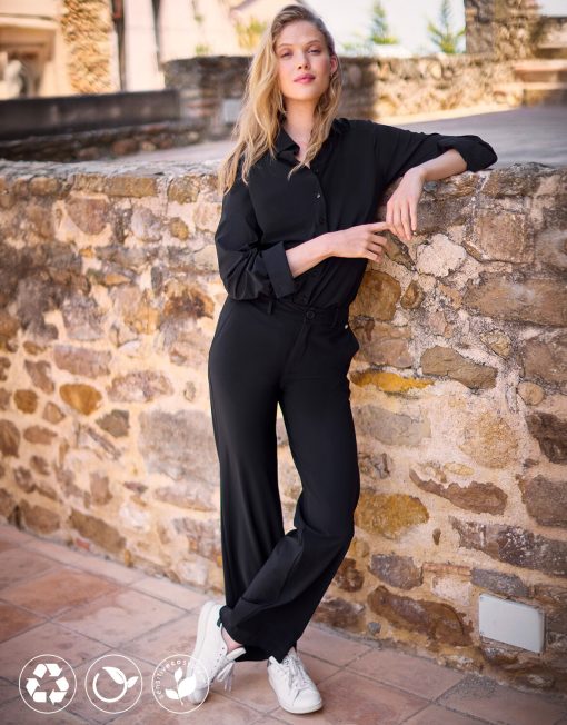 Lugano is the answer to comfortable and chic. These pants have the same fit as bestseller Geneva. Lugano is made from our iconic Italian travel jersey fabric. All our travel jersey styles are made from recycled yarn in an eco-friendly production cycle, read more here! She has a semi wide fit, straight legs and loops for a belt! Wear her with one of your favorite LaDress tops or suit her up with a matching blazer.