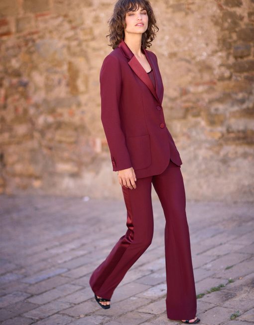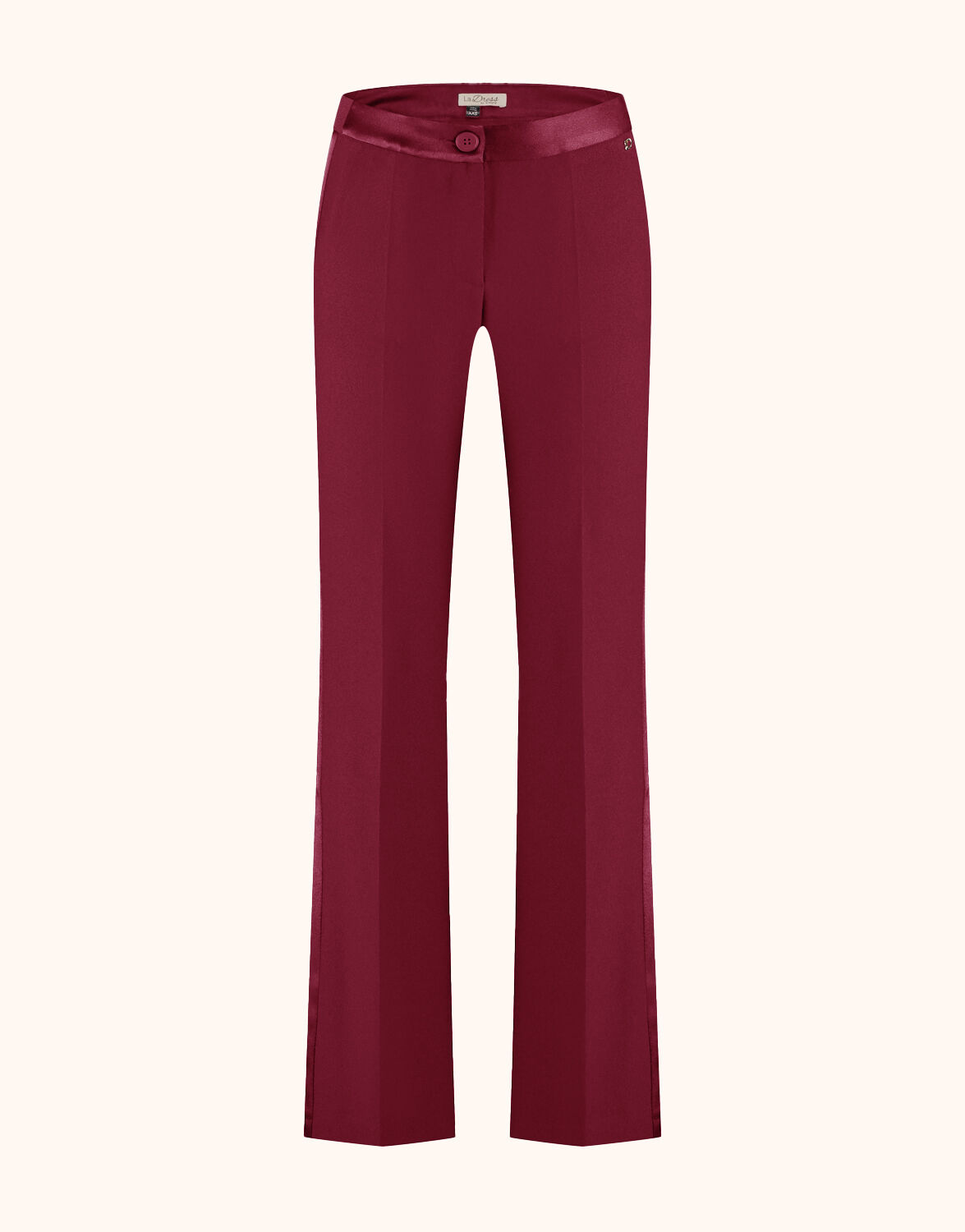 These straight-leg pants will effortlessly take you from desk to dinner. Palma is made of a smooth crêpe satin, detailed with satin accents. We’ve added elastic in the waistband for extra comfort. Complete your look with one of our blouses and a blazer. Note: this delicate fabric requires careful handling, avoid contact with rough or sharp objects to prevent damage.