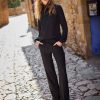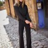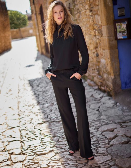 These straight-leg pants will effortlessly take you from desk to dinner. Porto is made of a smooth crêpe satin fabric, detailed with satin accents and an elastic waistband. Complete your look with one of our matching blouses, tops and/or blazers. The styling possibilities are endless. Note: this delicate fabric requires careful handling, avoid contact with rough or sharp objects to prevent damage.