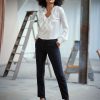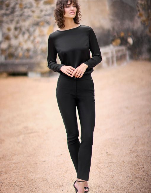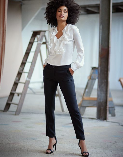 Seoul is a slim fit pants that fall just above the ankle. We’ve added elastic in the waistband for extra comfort. Suit her up with one of our matching blazers to create the ultimate office look. Note: this delicate fabric requires careful handling, avoid contact with rough or sharp objects to prevent damage.