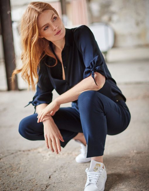 Seoul is a slim fit pants that fall just above the ankle. We’ve added elastic in the waistband for extra comfort. Suit her up with one of our matching blazers to create the ultimate office look. Note: this delicate fabric requires careful handling, avoid contact with rough or sharp objects to prevent damage.